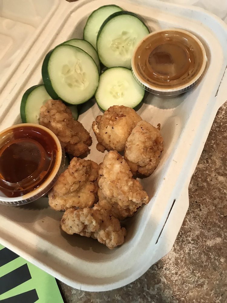 Four boneless chicken wingz with your choice of sauce served with Apples & PB Dip (CALS 249)